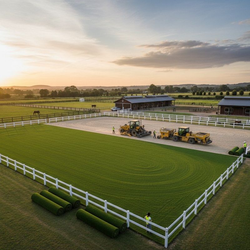 Equine turf installation offers a safe and comfortable surface for horses, reducing injury risks and supporting better performance. Proper turf ensures a stable footing, minimizes impact stress, and enhances overall well-being for horses in any equine facility.